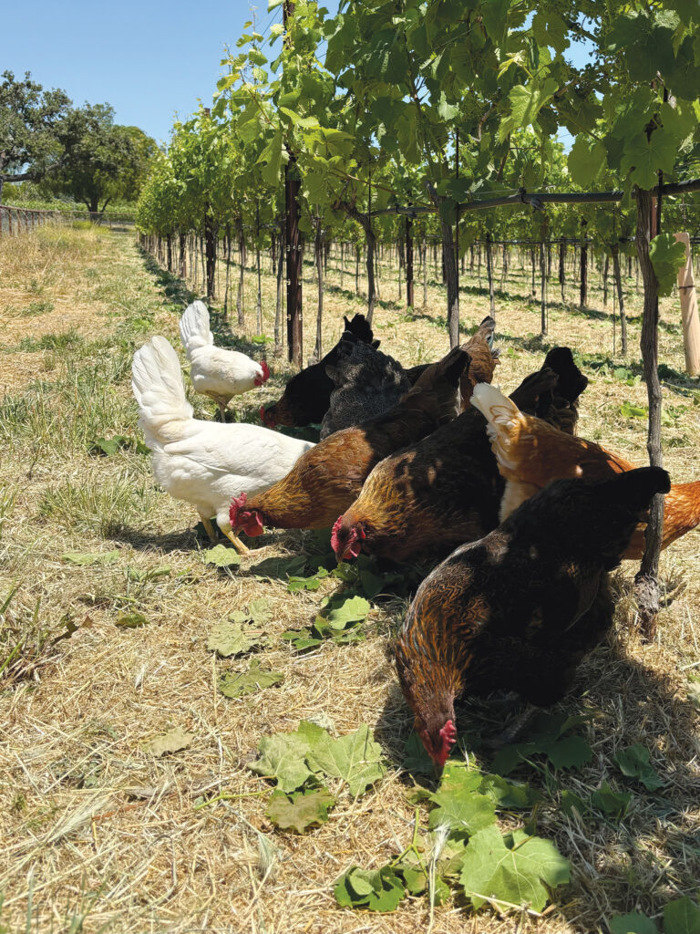 Animals can be hugely beneficial to soil by “adding fertility to the land” and “controlling the weeds,” Whitlow says. In the case of vineyards, having smaller animals like sheep and chickens roaming the land can help as they graze the cover crop and fertilize the soil with their nutrient-rich urine and dung. They also help activate the soil’s microbiology with their saliva, plus they help keep pests at bay by pecking at bugs.