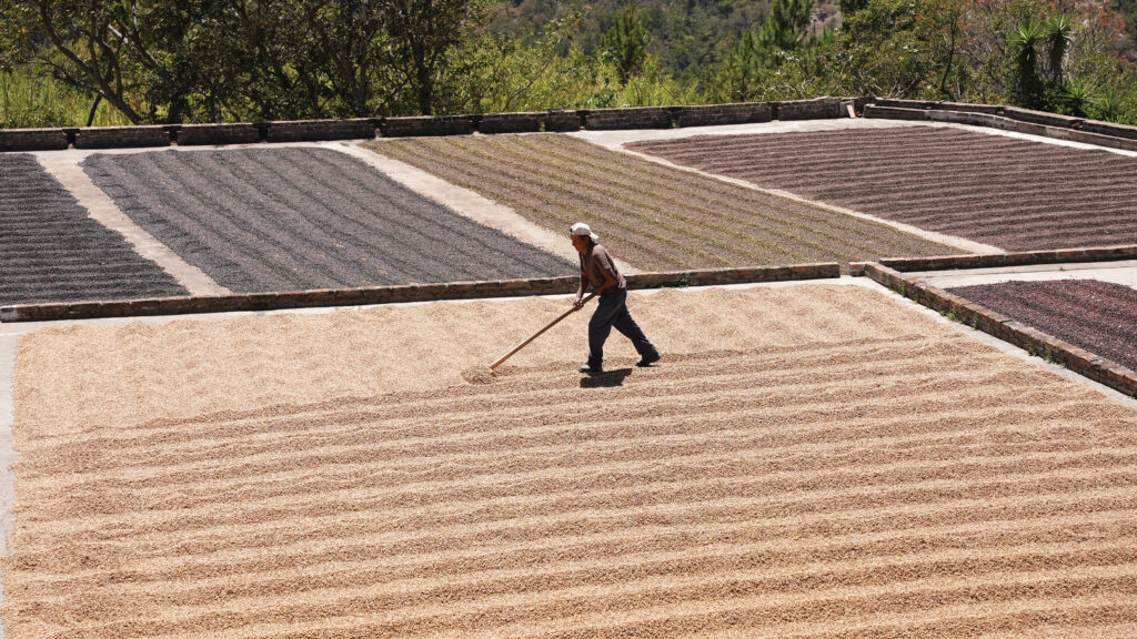 With regenerative farming, soil isn’t tilled. There are no synthetic or external inputs, and one of the most important elements is the use of cover crops, like small grasses, local shrubs, and native trees. Wind can be just as damaging to soil as rain, and the root network of cover crops keeps topsoil in place, creating the sponge-like layer that holds the water, nutrients, bacteria, and fungal networks. To receive Regenerative Organic Certification, coffee farmers must use only locally harvested compost — made from their own cow manure — or fertilizers with zero synthetics (even if they’re approved on the organic list of chemicals).