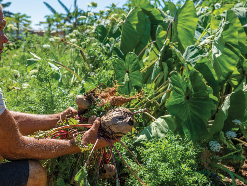 “Not a single drop of fertilizer or pesticide,” Garcia adds, proudly. “Just consistency, hard work, and a community that wants to grow this way and show stewardship. Most of what is grown here is known as the voyaging plants. These are the plants that were originally carried here by canoe. People can also come here and get trees from us.”