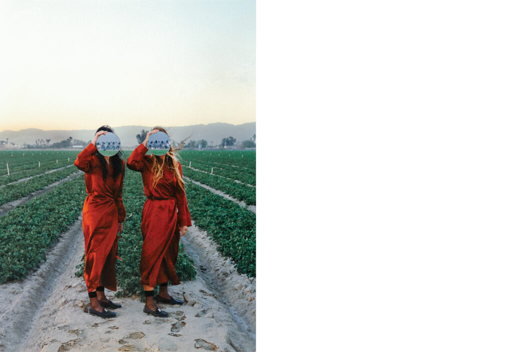 Rows and rows of farmland, rich in vegetation. An overexposed portrait of newborn heifers, lined up as if to pose. Identical twins, standing proud in their grandparents’ fields. These are the images that make up “The Onion Fields,” a collection of work by artists and photographers Ashlie Chavez and Amber Maalouf that spans 15 years, since the siblings began documenting their family’s farm. Rooted in their grandparents’ experience as migrant farmers who cultivated onions, the photographs blend intimate moments with imagery of their farm in Orland, California, illuminating the profound connections between labor, food, and heritage. For the artists, the onion is both reality and metaphor — a symbol of the layers they’ve peeled back over the years to reveal the sacrifices of their grandparents Pablo and Carmen Minor and the enduring strength of small farmers.